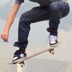 Point the front foot and pull up the back high as you can. Your body strains to tweak the deck. In a tight shape, pulling higher. A fraction of a second. Then smash the wheels down, back to rolling solid down the street.