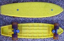 The banana board seen here with urethane wheels lead to another boom for skateboarding. From this boom came important innovations in what people were doing on skateboard. the board got wider so you could go faster and have more control. This let you do even more "tricks" with your board.